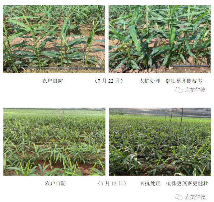 綜上所述,使用太抗?產(chǎn)品讓大姜長勢(shì)健壯整齊,側(cè)枝多且壯,防治死棵,提質(zhì)增產(chǎn)增收,并且太抗?產(chǎn)品在有機(jī)種植以及原原種生產(chǎn)中也取得不錯(cuò)的成績,助力生產(chǎn),我們一直在努力!
